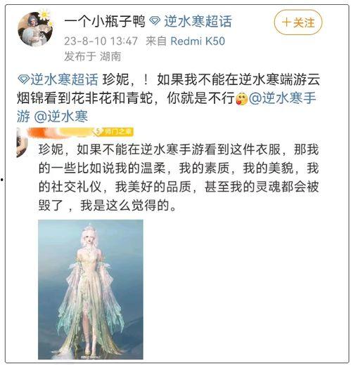 自从《逆水寒》时装爆料以来,玩家们纷纷热议。有人表示,这次的新时装设计非常用心,既保留了古代服饰的特色,又融入了现代审美元素,让人眼前一亮。也有人认为,部分时装的特效过于华丽,可能会影响游戏体验。